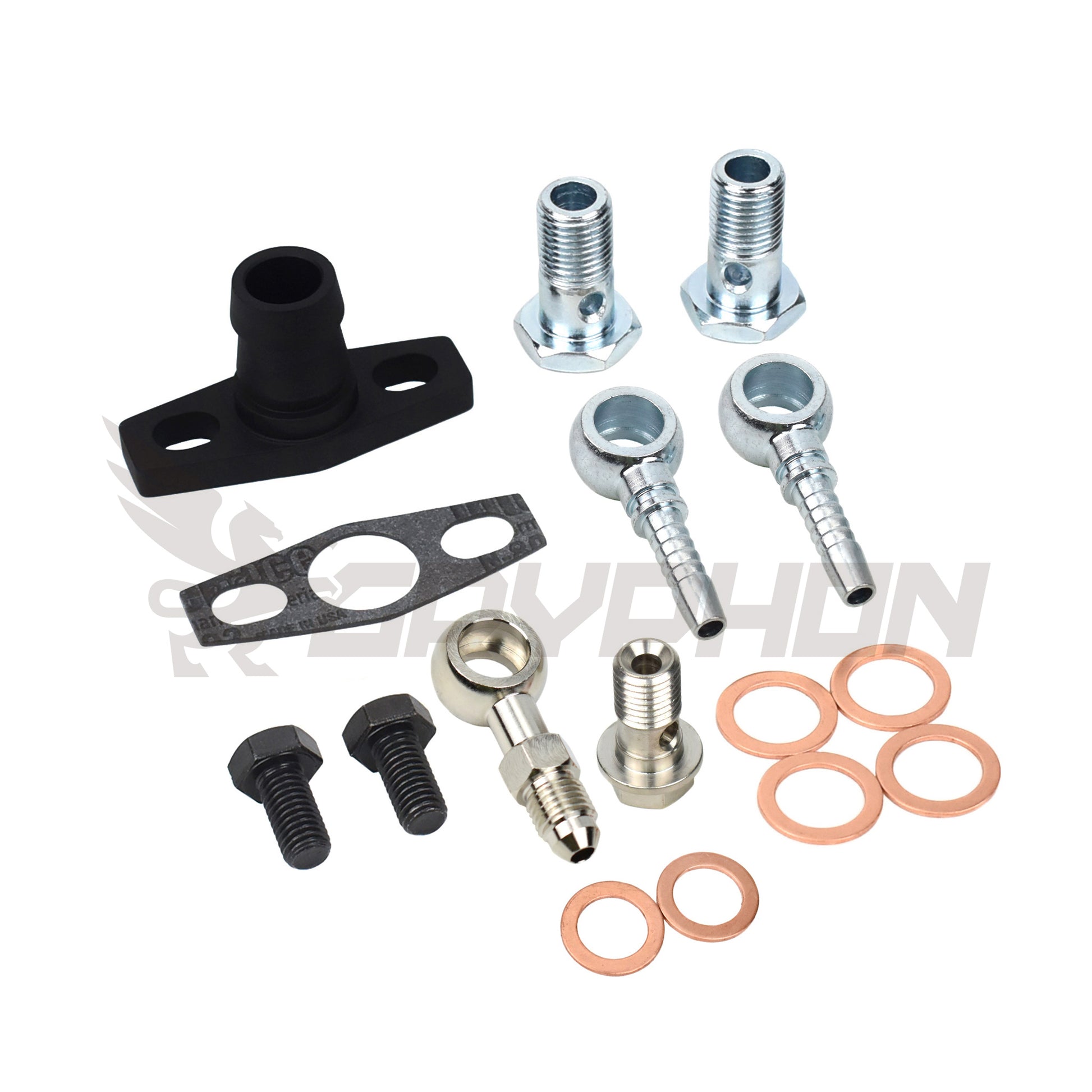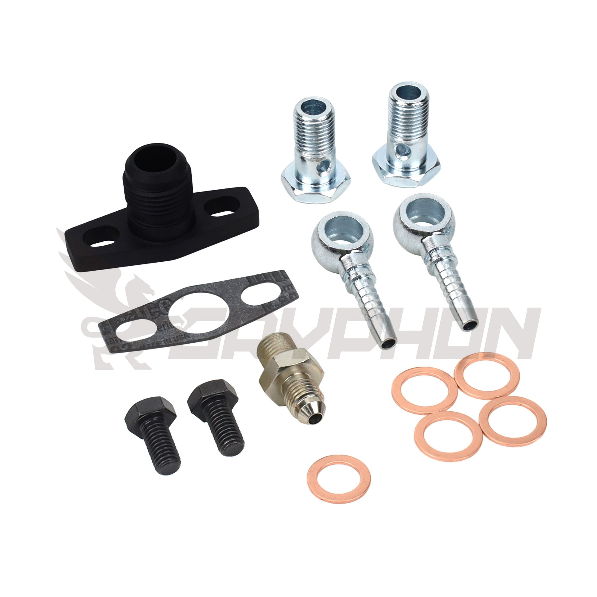 This fitting kit is engineered for BorgWarner EFR Series turbochargers, including EFR 6258, 6758, 7163, 7670, 8374, 8474, 9174, 9274, and 9280. It includes everything you need to connect oil feed, oil drain, and water cooling lines. Ideal for custom or upgraded turbo setups.